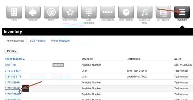 3. From here, select "Inventory" then click on the DDI you wish to divert.