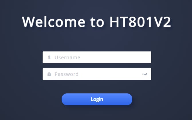 You should be presented with the below login screen. The default logins for a HT801 are admin/admin.