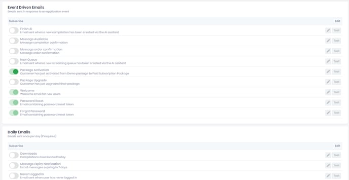 Within here you can enable/disable certain automated emails, as well as modify the underlying template.