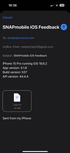 Mobile app logs can help our support team troubleshoot and diagnose issues with the SNAPMobile app.