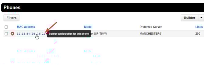 From here, click on the MAC address of the phone you want to add a builder profile to.